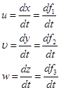 Чтобы определить скорости в какой-либо точке надо задать ее координаты. Поле ускорений потока можно получить если продифференцировать систему (3):