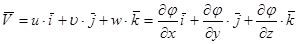 , такие течения называются безвихревыми или потенциальными,. Т.к. в этом случает существует потенциал вектора скорости φ, который связан с составляющими вектора скорости следующими соотношениями: