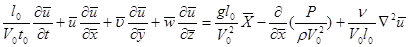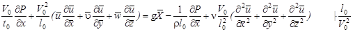 Уравнение сплошности после приведения к безразмерному виду не изменится. После приведения уравнения движения к безразмерному виду появились безразмерные комплексы.