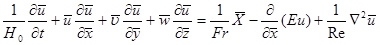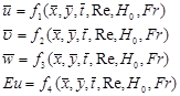 После приведения уравнения Навье-Стокса к следующему виду они стали содержать следующие типы переменных: 1) безразмерные независимые переменные