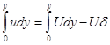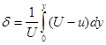 Из-за торможения жидкости линия тока отклоняется от поверхности на расстояние δ. Расход жидкости между поверхностью и линией тока в плоском течении будет равен: