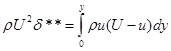 δ* может быть представлена, как линейный отрезок через который проходит секундный объемный расход идеальной жидкости, равный потере расхода через сечение погранслоя из-за торможения в реальном течении. Из-за торможения снижается и количество движения жидкости в погранслое. С количеством движения связана толщина потери импульса: