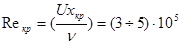 Если перемещать микротрубку вдоль обтекаемой поверхности на одинаковом расстоянии от нее, то по мере погружения микротрубки в ламинарный погранслой значение скорости, которое она будет показывать с увеличением х будет убывать. Вначале перехода ламинарного погранслоя в турбулентный (хкр1 ) профиль скорости начинает перестраиваться – становится более заполненным – прижимается к пластине, поэтому скорость возрастает. При x >хкр2 микротрубка погружается уже в турбулентный погранслой и поэтому скорость будет уменьшаться. За точку перехода принимают значение х, в которой скорость достигает минимума. Для определения границы перехода используют: