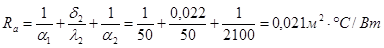а) стенка стальная совершенно чистая, толщиной δ2 (λ2 =50 Вт/(м·ºС);