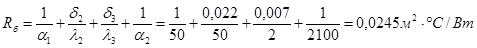 б) стенка стальная, со стороны воды покрыта слоем накипи толщиной δ3 (λ3 =2 Вт/(м·ºС);