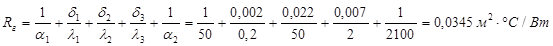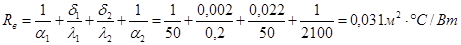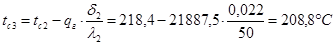 Дано: tж1 =950ºС, tж2 =210ºС, α1 =65 Вт/(м2 ·ºС), α2 ·10-3 =2,1 Вт/(м2 ·ºС), δ2 =19 мм, δ3 =5 мм.