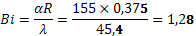 По известным значениям радиуса и коэффициента α найдем значения критерия Био