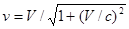 Заметим, что преобразование Лоренца легко выразить через скорость V , пользуясь тем, что кажущаяся скорость v сравнительно просто выражается через истинную (галилеевскую ) скорость [8], которая отвечает классическому типу отображения.
