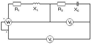 Определим показания 2-го вольтметра. Для этого найдем значение полного сопротивления, создаваемого активным сопротивлением R2 и емкостным ХС :