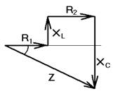Z= ( (R1 + R2 ) ^2+ (XL - XC ) ^2) ^0.5=8.60 (Ом);