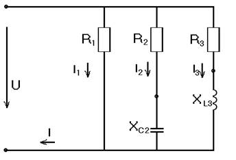 Найдем реактивный ток неразветвленной ветви, как сумму реактивных токов параллельных участков (причем знак “ - ” соответствует емкостному характеру тока):