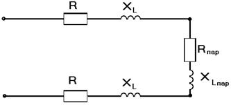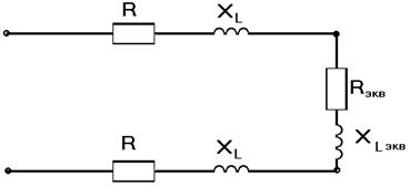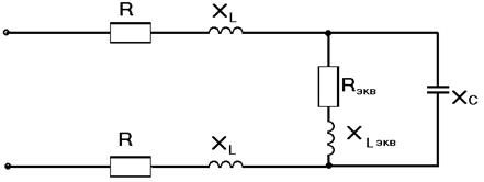 Составим эквивалентную схему, заменив параллельный участок на эквивалентные активные и реактивные сопротивления: