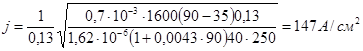 Поскольку должно быть равенство между выделенной в катушке и отводимой с ее поверхности тепловыми мощностями, то исходным уравнением для нахождения допустимой плотности тока будет: