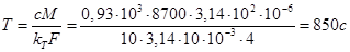 где с — удельная теплоемкость меди; М = γ V — масса стержня длиной в 1 м; γ — плотность меди; V — объем проводника; F — охлаждающая поверхность.