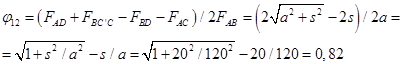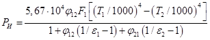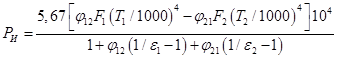 Поскольку F1 = F2 = 120 ∙ 10-3 м2 ,то φ21 = φ12 = 0,82.