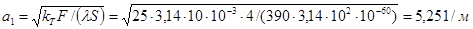 Здесь λ = 390 Вт/(м·град) — коэффициент теплопроводности меди, температура стержня ϑ = 50,6°С.