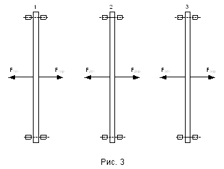 Решение: В случае установившегося тока К.З. будут действовать знакопеременные времени усилия. Определим максимальные притягивающие и максимальные отталкивающие усилия на каждый из трех ножей разъединителя (рис. 3):