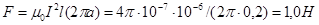 Решение: Поскольку диаметр проводника значительно меньше, чем расстояние до ферромагнитной стенки, то к решению следует подходить, как и в случае бесконечно тонкого проводника. Методом зеркального изображения найдем электродинамическое усилие, которое действует между данным проводником и его зеркальным изображением относительно поверхности ферромагнитной стенки с тем же током I .
