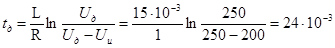 10. Определить полное время горения дуги, если напряжение на дуге Uд = 250В в зависимости от тока остается постоянным. Напряжение сети Uи = 200В, сопротивление R = 1 Ом, индуктивность L = 15 мГ