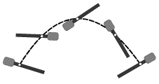 Возьмем резиновую палку, утяжеленную на одном из концов и имеющую лампочку точно в центре масс (рис. 3.1). Зажжем лампочку и бросим палку из одного конца аудитории в другой, сообщив ей произвольное вращение - траекторией лампочки будет при этом парабола - кривая, по которой полетело бы небольшое тело, брошенное под углом к горизонту.