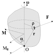 - составляющая силы, приложенной к твердому телу, перпендикулярная оси вращения,
