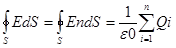 Поток вектора напряженности электростатического поля в вакууме сквозь произвольную замкнутую поверхность равен алгебраической сумме заключенных внутри этой поверхности зарядов, деленной на e0 – эл.постоянная (Ф/м).