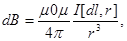 где : dl - вектор, по модулю равный длине dl эл.проводника и совпадающий по направлению с током, r- радиус вектор, r
