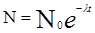 , где N0 – начальное число не распавшихся ядер (t = 0), N – число не распавшихся ядер в момент времени t . Формула выражает закон радиоактивного распада, согласно которому число не распавшихся ядер убывает со временем по экспоненциальному закону.