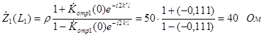 Вначале вычислим коэффициент отражения от нагрузки