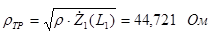 Вычислим волновое сопротивление ЛП четвертьволнового трансформатора для согласования генератора с внутренним активным сопротивлением