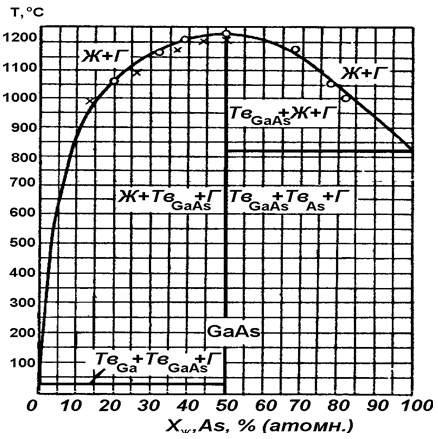 Рис. 1.1 Диаграмма плавкости (X - T ) арсенида галлия.