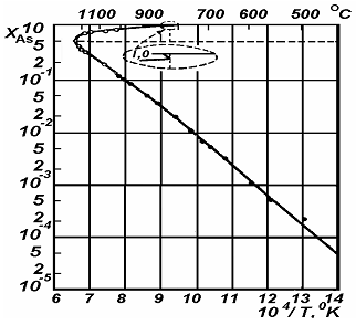 Рис.2.2 Кривая растворимости мышьяка в жидком Галлии.