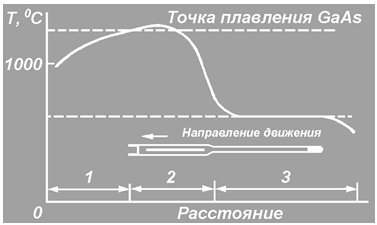 Лодочку с загрузкой помещают в кварцевую ампулу, которую запаивают под вакуумом. Нагрев системы осуществляется с помощью трех печей: печи для расплавления арсенида галлия и двух печей для управления температурными градиентами: температура одной 800°С, а другой 600°С. Скорость прохода зоны изменяется в пределах 0,5 - 5см/ч.