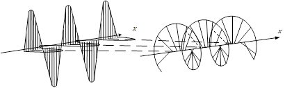 в кожній точці поля описує еліпс, який лежить у площині, перпендикулярній до осі ОХ.