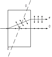 При односторонньому стиску або розтязі тіла вздовж напрямку ОО в ньому виникає оптична анізотропія, яка еквівалентна анізотропії одноосного кристала з оптичною віссю ОО. Звичайний і незвичайний промені будуть поширюватися в напрямку, який перпендикулярний до ОО, із різними швидкостями υ0 іυ е . Якщо головний переріз поляризатора не паралельний і не перпендикулярний до ОО, то світло, яке пройшло через деформоване тіло, стане еліптично поляризованим і його не можна погасити аналізатором.