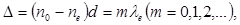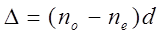 - коефіцієнт пропорційності, а різниця фаз між звичайним і незвичайним променями становитиме