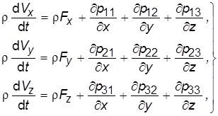 Если свойства среды в разных направлениях одинаковы, то она называется изотропной, в противном случае – анизотропной. В изотропной среде Bijmn представляется симметричной матрицей размерности 3´3´3´3, одинаковой в любой системе координат. Можно показать [1], что в этом случае все компоненты тензора Bijmn выражаются всего лишь через два независимых параметра l и m, называемых коэффициентами Ламе, поэтому закон Навье-Стокса для вязкой изотропной жидкости имеет вид: