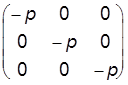 где –p – общее значение скалярных произведений. Величину p называют давлением. Его особенность заключается в независимости от направления рассматриваемого взаимодействия частиц. При p > 0 среда, как показывает опыт, находится в сжатом состоянии, поэтому и использован знак минус. Таким образом, матрица компонент тензора внутренних напряжений в идеальной жидкости (газе) имеет вид: