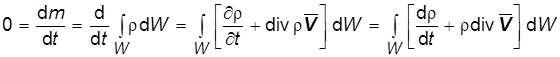 , где в механике сплошной среды следует понимать под Dm массу вещества, заключенную в объеме DW. Посмотрим, как будет выглядеть закон сохранения массы