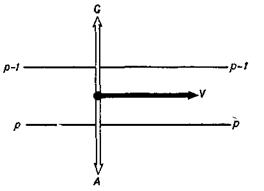 Рис.4.21. Геострофический ветер. G — сила барического градиента, А — отклоняющая сила вращения Земли, V — скорость ветра.