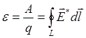 Електрорушійна сила джерела струму чисельно дорівнює роботі переміщення точкового електричного заряду сторонніми силами в замкнутому колі, включаючи і саме джерело, до величини цього заряду, тобто