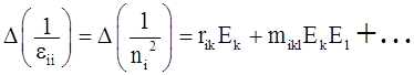 Величина зміни показника заломлення під впливом електричного поля Е може бути визначена, використовуючи слідуюче співвідношення: