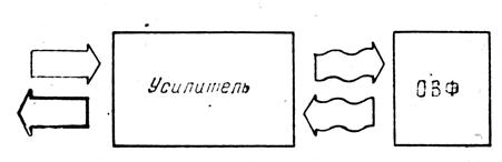 Важливою задачею лазерної техніки є створення потужних малорозбіжних пучків. Для підвищення потужності пучка часто використовують оптичний підсилювач. Нажаль, високий енерговихід майже завжди супроводжується значним погіршенням структури випромінювання через оптичні неоднорідності в робочому середовищі підсилювача. Методи ОХФ дозволяють здійснити самокомпенсацію спотворень, які вносяться фазовими неоднорідностями підсилювача. При цьому компенсуються як статичні, так і динамічні (тобто ті які міняються від імпульсу до імпульсу або навіть на протязі імпульсу) спотворення. Двохпрохідна схема самокомпенсації представлена на рис.4.1 Нехай малопотужний, але малорозбіжний пучок спрямовується на вхід підсилювача з оптичними неоднорідностями. Підсилення пучка при першому проході одночасно збільшує його кутову розбіжність. Якщо пучок знов повернути в підсилювач, попередньо здійснивши ОХФ, то ця обернена хвиля, по-перше, додатково підсилиться. По-друге, що теж важливо, що неоднорідності, які на прямому проході спотворювали структуру пучка, при зворотному проході в точності компенсуються в оберненій і підсиленій хвилі. Якщо є два підсилювачі з однотипними неоднорідностями, то розглянуту схему можна модифікувати так, щоб другий прохід (після ОХФ) випромінювання здійснювало по другому підсилювачу.