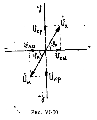 Компенсаторы переменного тока — это приборы, измеряющие на переменном токе напряжения и некоторые другие электрические величины, связанные с напряжением функциональной зависимостью (ток, сопротивление, мощность и др.). Как известно, напряжение на переменном токе можно представить как комплексную величину и изобразить в виде вектора, занимающего определенное положение на комплексной плоскости (рис. VI-30),