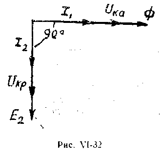 Если пренебречь индуктивным сопротивлением вторичной обмотки воздушного трансформатора, то можно считать, что ток второго контура I2 совладает по фазе с э. д. с. Е2, а напряжение Uкр на реохорде А—В, представляющем собой чисто активное сопротивление, совпадает по фазе с током I2.