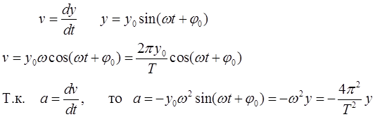 Вычислим скорость и ускорение точки, совершающей гармоническое колебание: