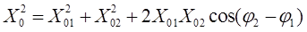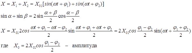 При φ1 – φ2 = 2к π , (к = 0,1,2,…) Х0 = 2Х01 – колебания усиливаются.