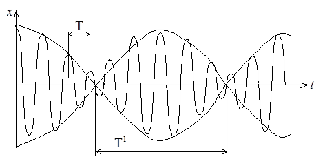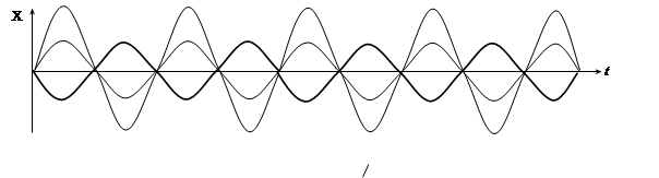Особый интерес представляет сложение колебаний одинакового направления с одинаковыми амплитудами, имеющими (близкие) мало отличающиеся частоты.