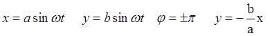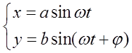 б) составляющая колебания отличается по фазе на π/2 . Уравнение траектории имеет вид: