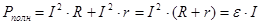 Полная мощность является суммой полезной мощности и мощности, выделяющейся на внутреннее сопротивление: